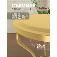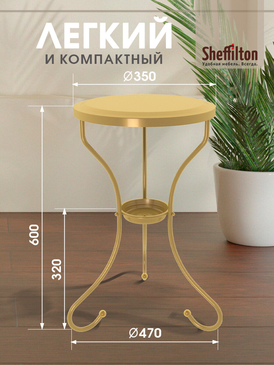 Изящный, стильный и миниатюрный журнальный столик в благородном цвете под золото от Sheffilton добавит акцент в Ваш интерьер дома, дачи, кафе, гостиницы и остальных зон отдыха. В небольшую пластиковую чашу в основании столика удобно разместить полезные мелочи.