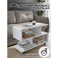 Столик журнальный на колесиках от бренда «Мебель от Прудникова», 70х30х62 см, белый и бетон: сравнение цен, характеристики, фото, актуальное наличие и цены.