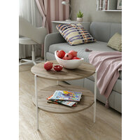 Купить Столик журнальный Шафран, 2 полки, столешница 600 мм, металлические ножки, дуб/белый с доставкой по всей России.