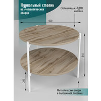 Столик журнальный Шафран, 2 полки, столешница 600 мм, металлические ножки, дуб/белый: сравнение цен, характеристики, фото, актуальное наличие и цены.