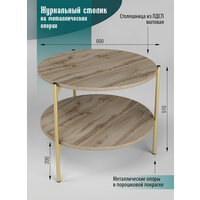 Столик журнальный Шафран, 2 полки, столешница 600 мм, металлические ножки, дуб/золото: сравнение цен, характеристики, фото, актуальное наличие и цены.