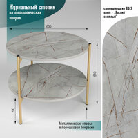 Столик журнальный Шафран, 2 полки, столешница 600 мм, металлические ножки, каспий светлый/золото: сравнение цен, характеристики, фото, актуальное наличие и цены.