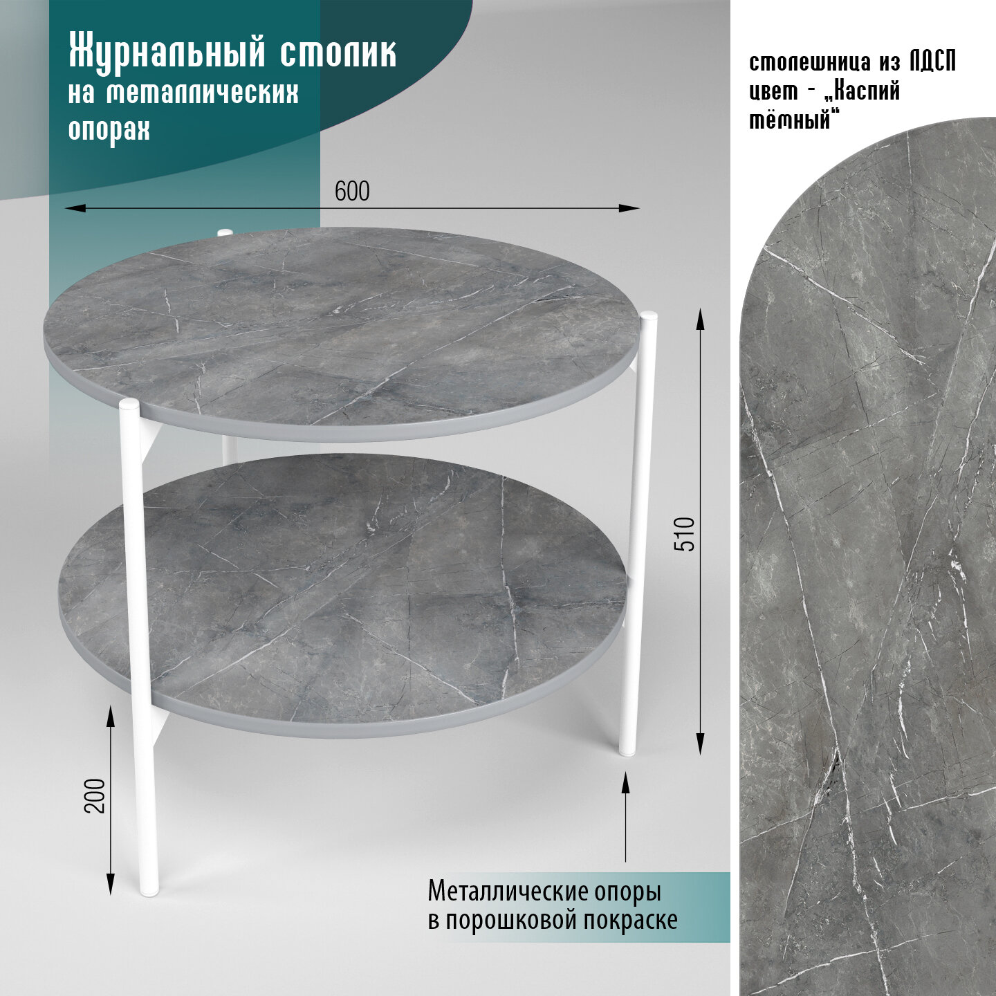 Столик журнальный Шафран, 2 полки, столешница 600 мм, металлические ножки, каспий темный/белый: сравнение цен, характеристики, фото, актуальное наличие и цены.