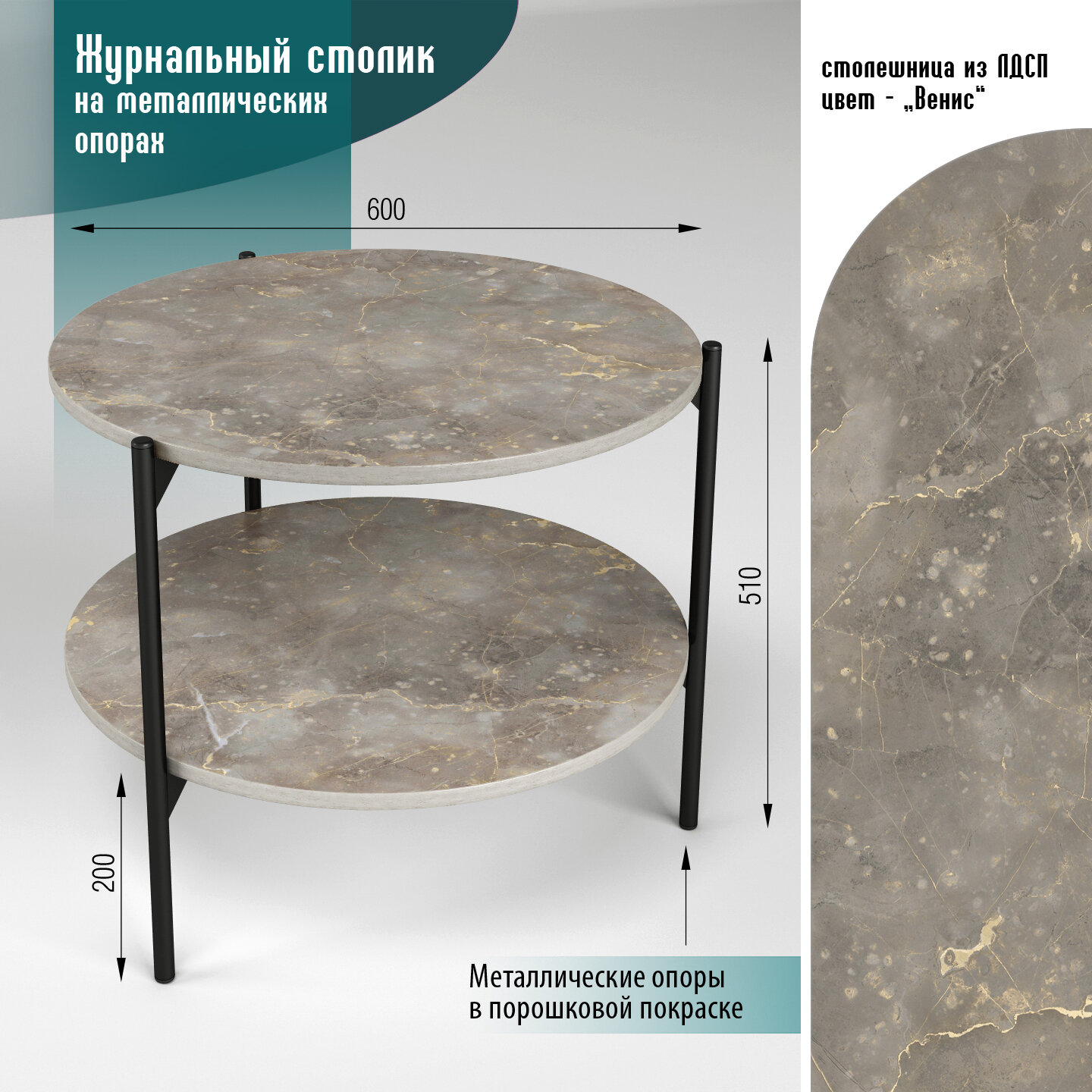 Столик журнальный Шафран, 2 полки, столешница 600 мм, металлические ножки, венис/черный: сравнение цен, характеристики, фото, актуальное наличие и цены.