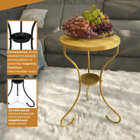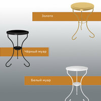 | Дополнительная информация | диаметр столешницы 350 мм; каркас выполнен из трубы диаметром 10 мм; максимальная статическая нагрузка на столик 5 кг; материал чаши в основании столика: пластик; столешница снимается и ее можно использовать в качестве подноса |