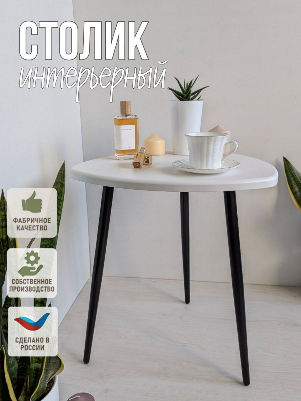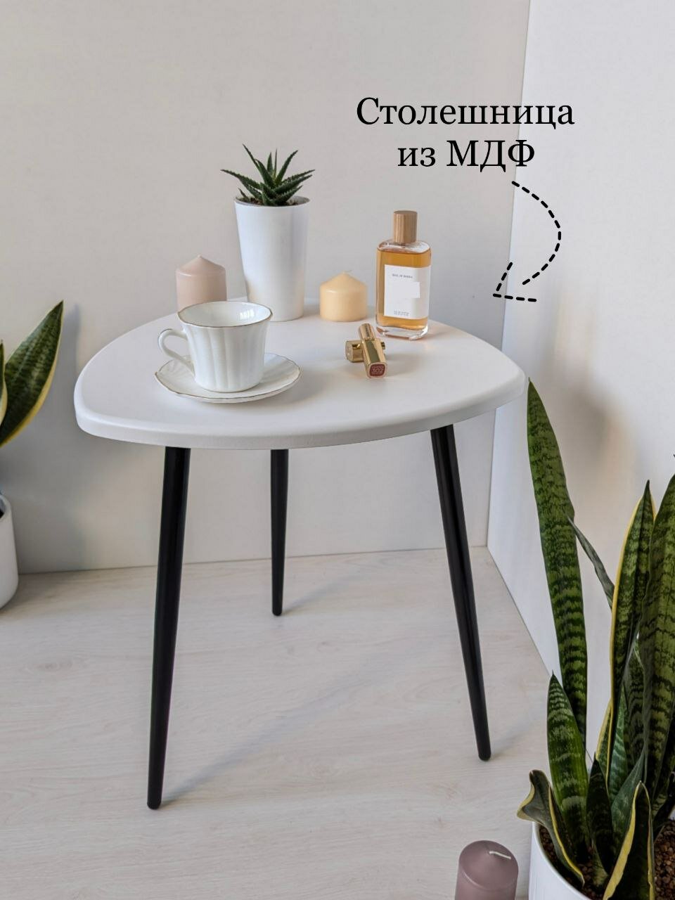 Столик журнальный треугольный, длина сторон 47х47х47см, цвет: белый на черных металлических ножках-конус.: сравнение цен, характеристики, фото, актуальное наличие и цены.