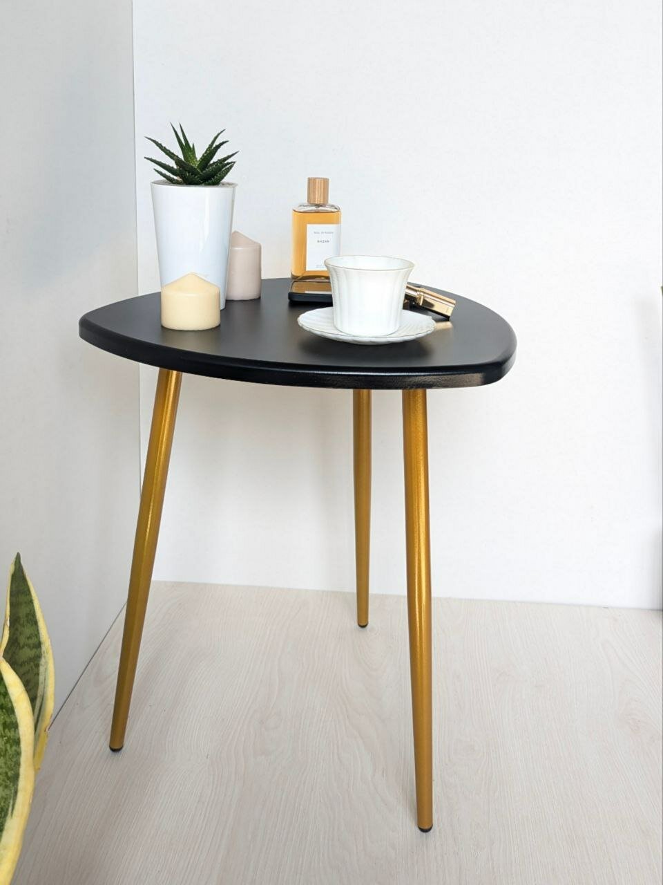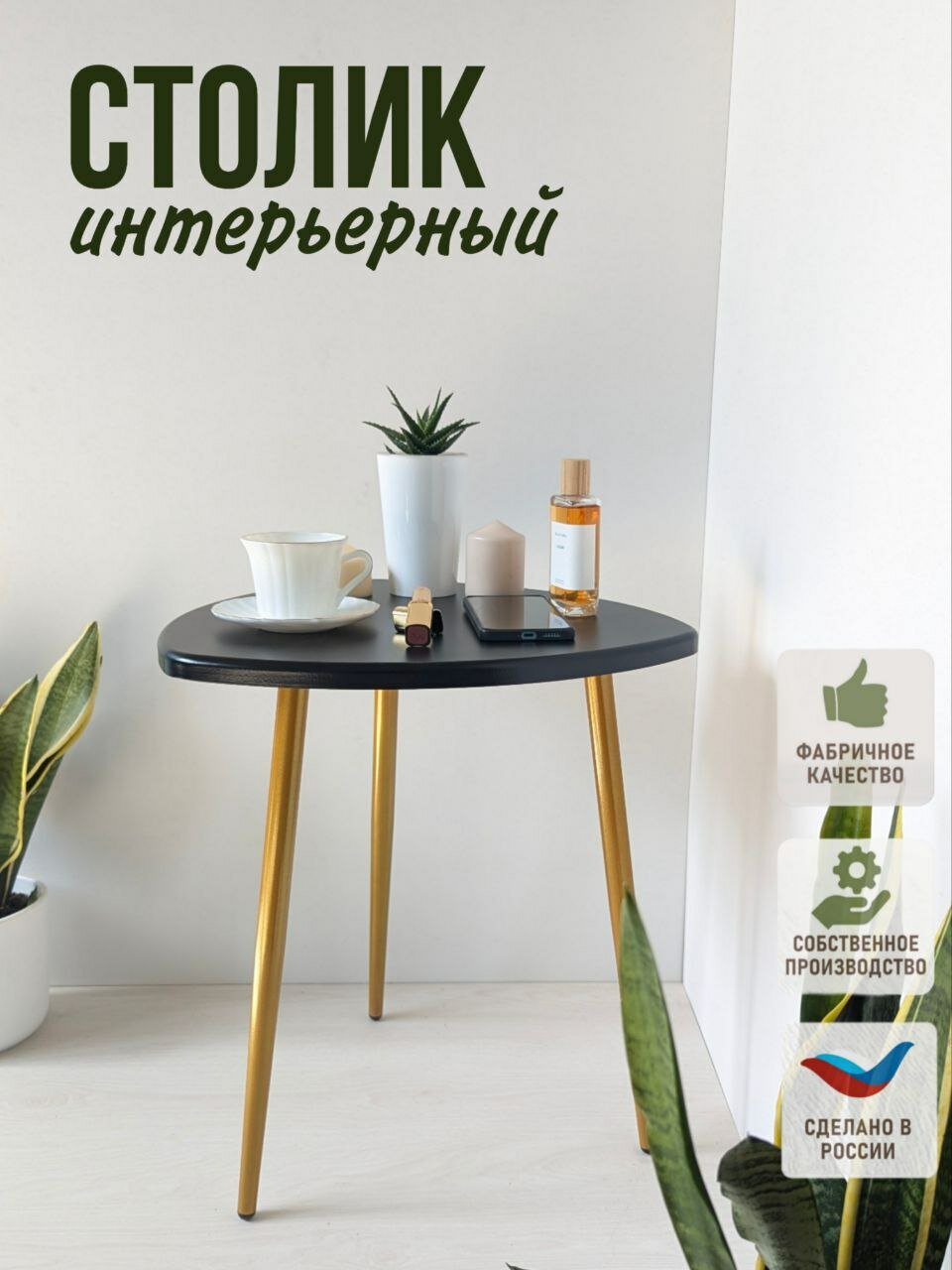 Столик журнальный треугольный, длина сторон 47х47х47см, цвет: черный, металлические ножки-конус: сравнение цен, характеристики, фото, актуальное наличие и цены.