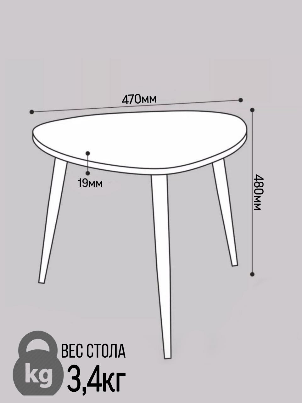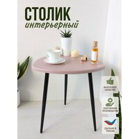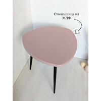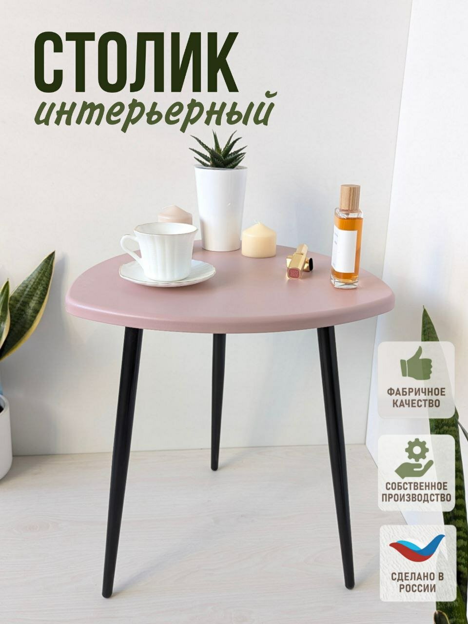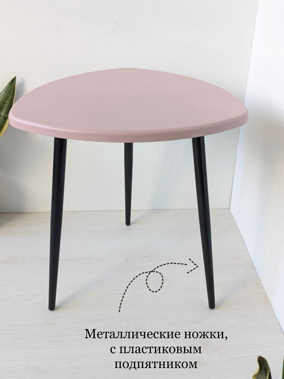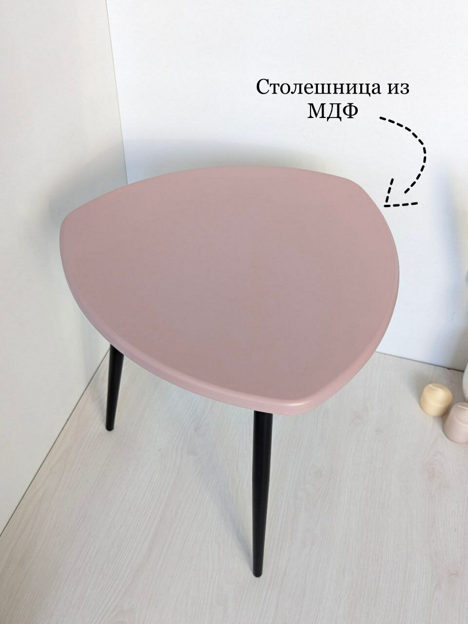 Столик журнальный треугольный, длина сторон 47х47х47см, цвет: светло-розовый, черные металлические ножки-конус.: сравнение цен, характеристики, фото, актуальное наличие и цены.