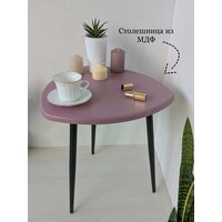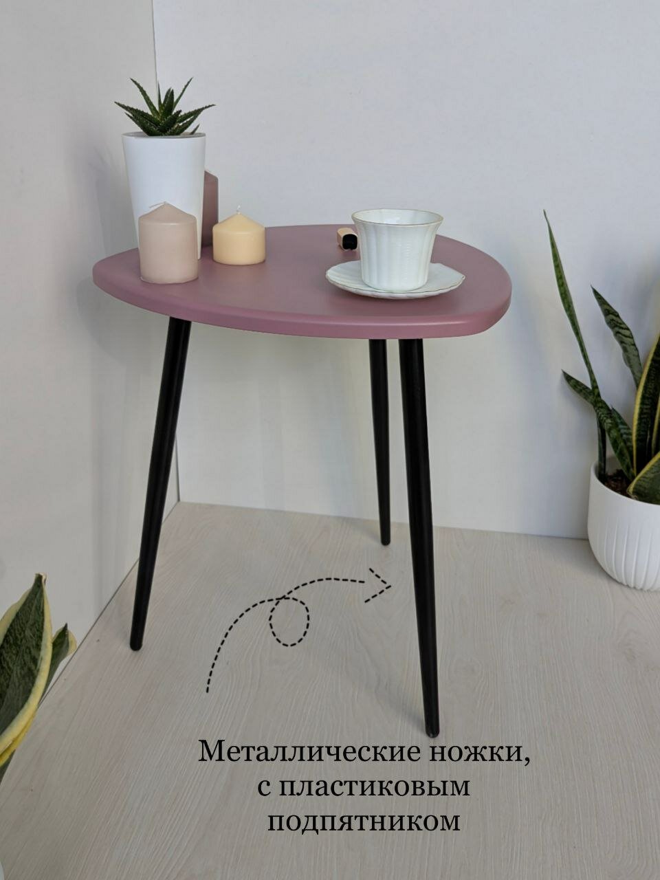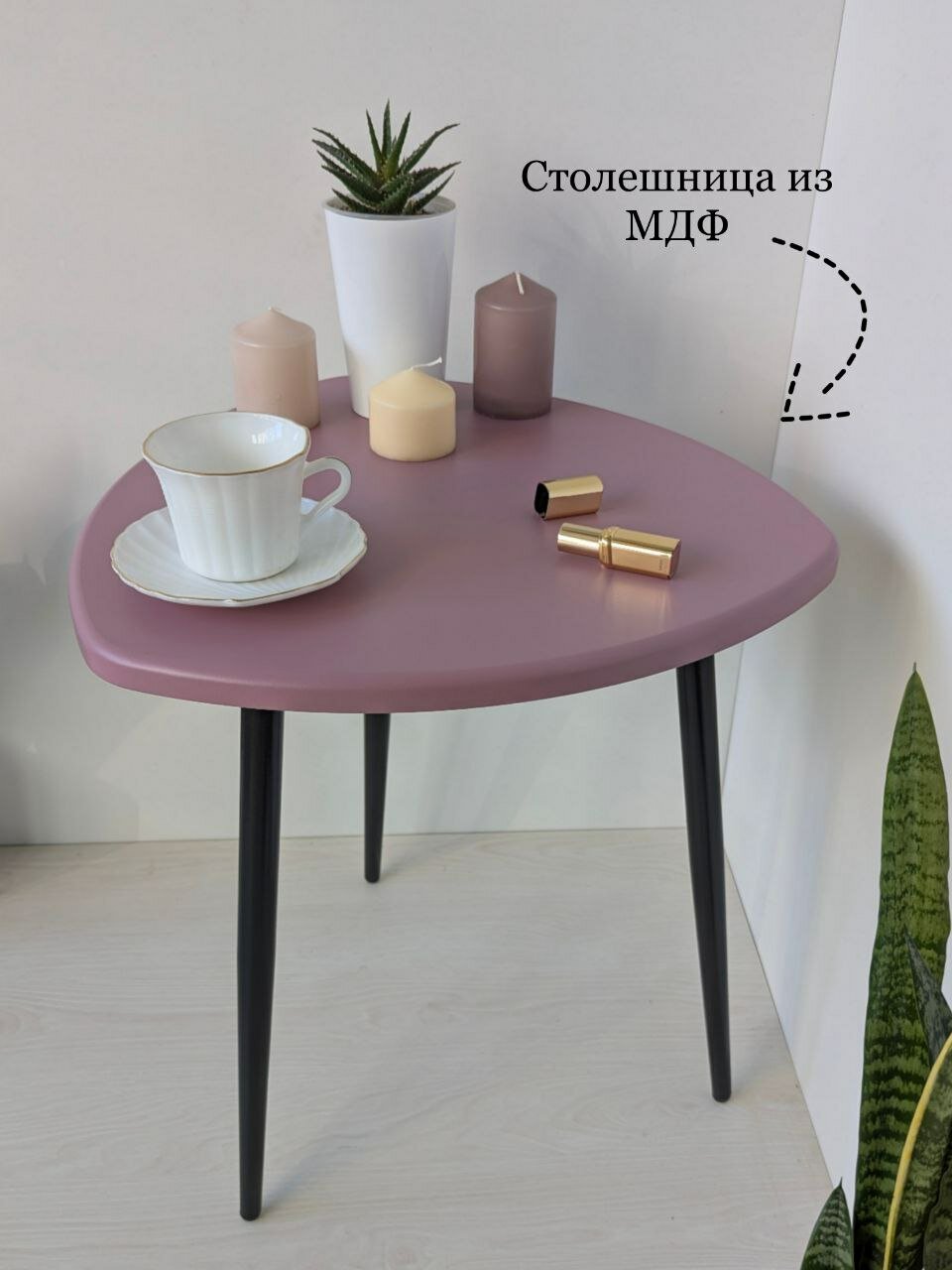 Столик журнальный треугольный, длина сторон 47х47х47см, цвет: темно-розовый, на черных металлических ножка-конус.: сравнение цен, характеристики, фото, актуальное наличие и цены.