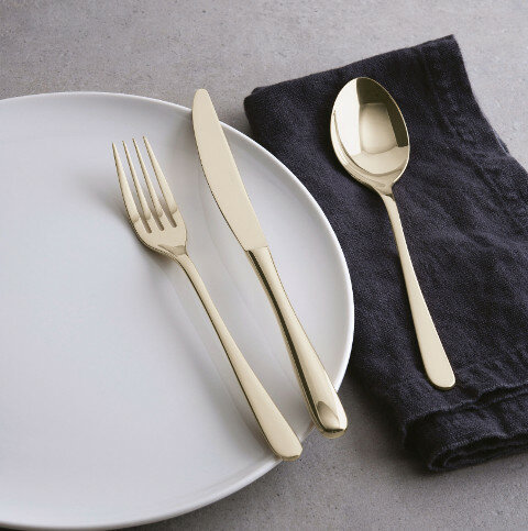 Нежный, изысканный оттенок шампанского и зеркальная полировка придают столовым приборам гламурный вид. Лаконичный дизайн с ручками каплевидной формы прекрасно смотрится в повседневной сервировке и на праздничном столе.