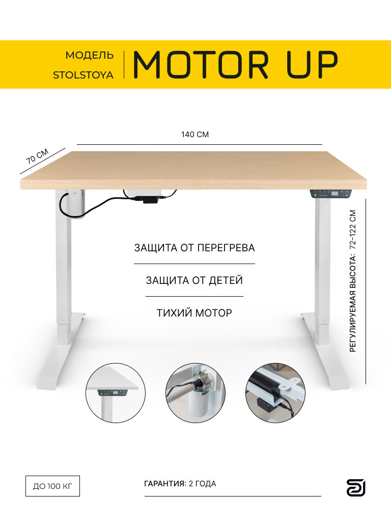 | Дополнительная информация | Регулировка высоты стола от 73 до 121 см. Нагрузка 100 кг. Управление с пульта с памятью на 4 положения. |