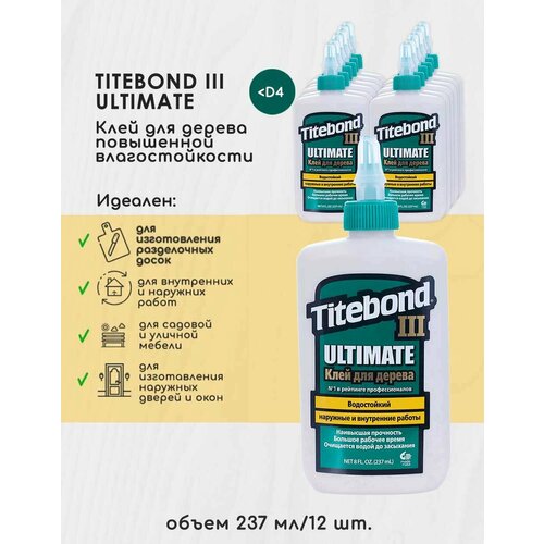 Клей для дерева Titebond III Ultimate Wood Glue Влагостойкий ПВА 1413 короб 12шт х 237мл: сравнение цен, характеристики, фото, актуальное наличие и цены.