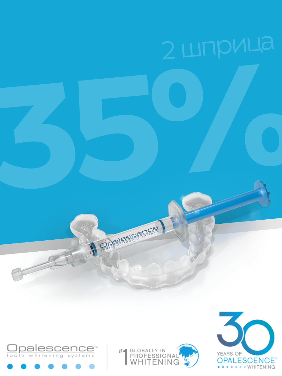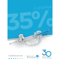Это комплект отбеливающих гелей без вкусовых добавок на основе 35% перекиси карбамида. Вязкая консистенция геля обеспечивают плотную фиксацию индивидуальных капп. В составе геля имеется фторид натрия и нитрат калия, благодаря которым снижается чувствительность эмали, и предотвращается появление кариеса.