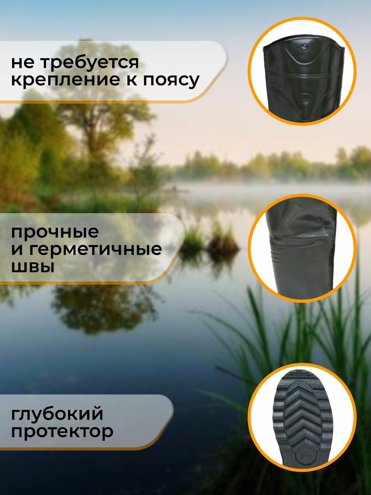 Конструкция надставки разработана при соблюдении особенностей фигуры и роста человека для того, чтобы рыбалка была комфортной и приятной. Характеристики: Технология 2-х компонентное монолитное литье, сварка швов токами СВЧ Материал верха PVC DU-Elastic Материал подошвы PVC Du-elastic Материал подкладки полиэстер Высота (средняя) 90 см Вес (средний) 2.811 кг