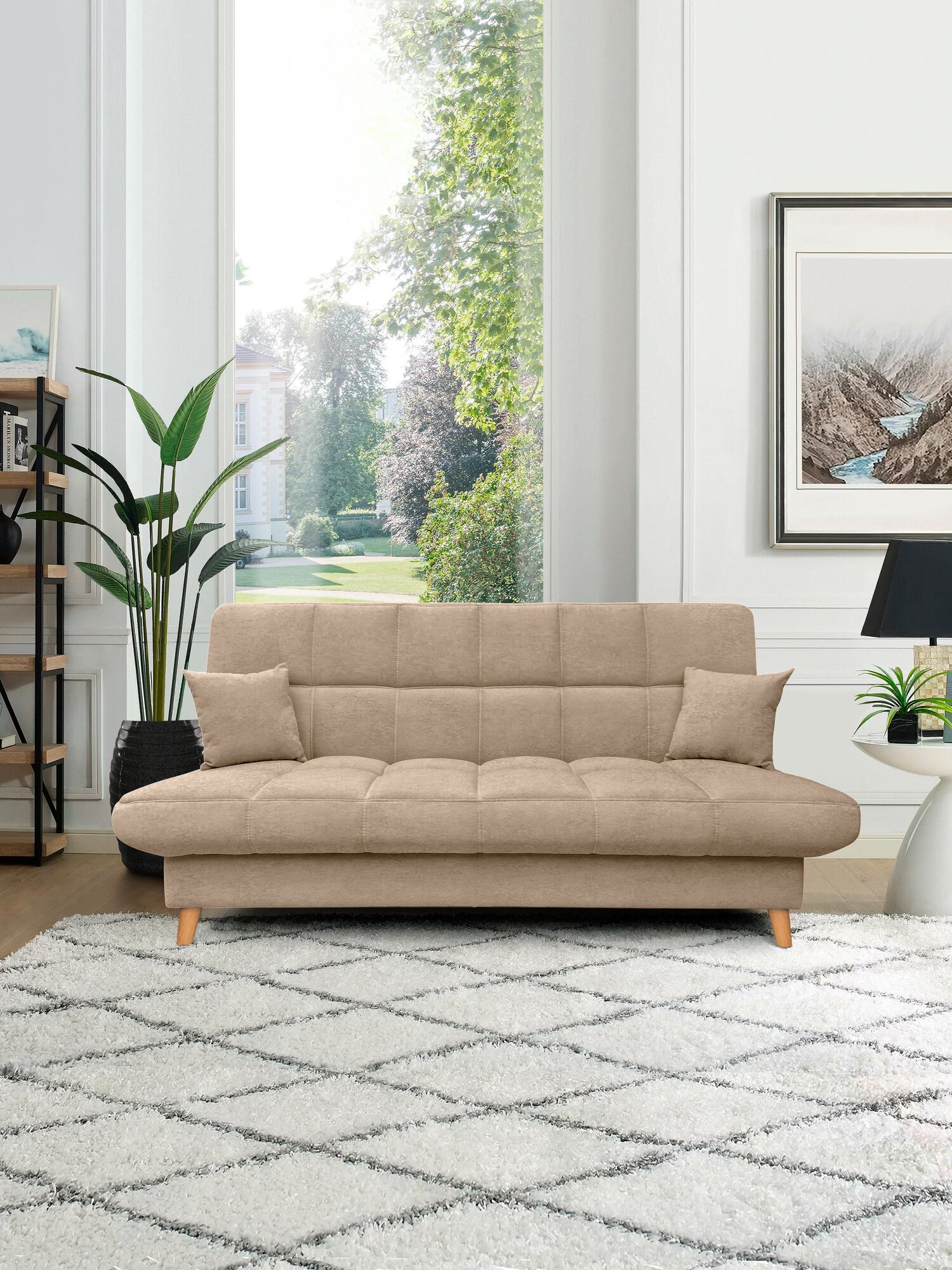 Купить Диван кровать Стоун с подушками-прямой раскладной, бежевый, с ящиком для хранения, механизм клик-кляк, 200х93х99 см с доставкой по всей России.