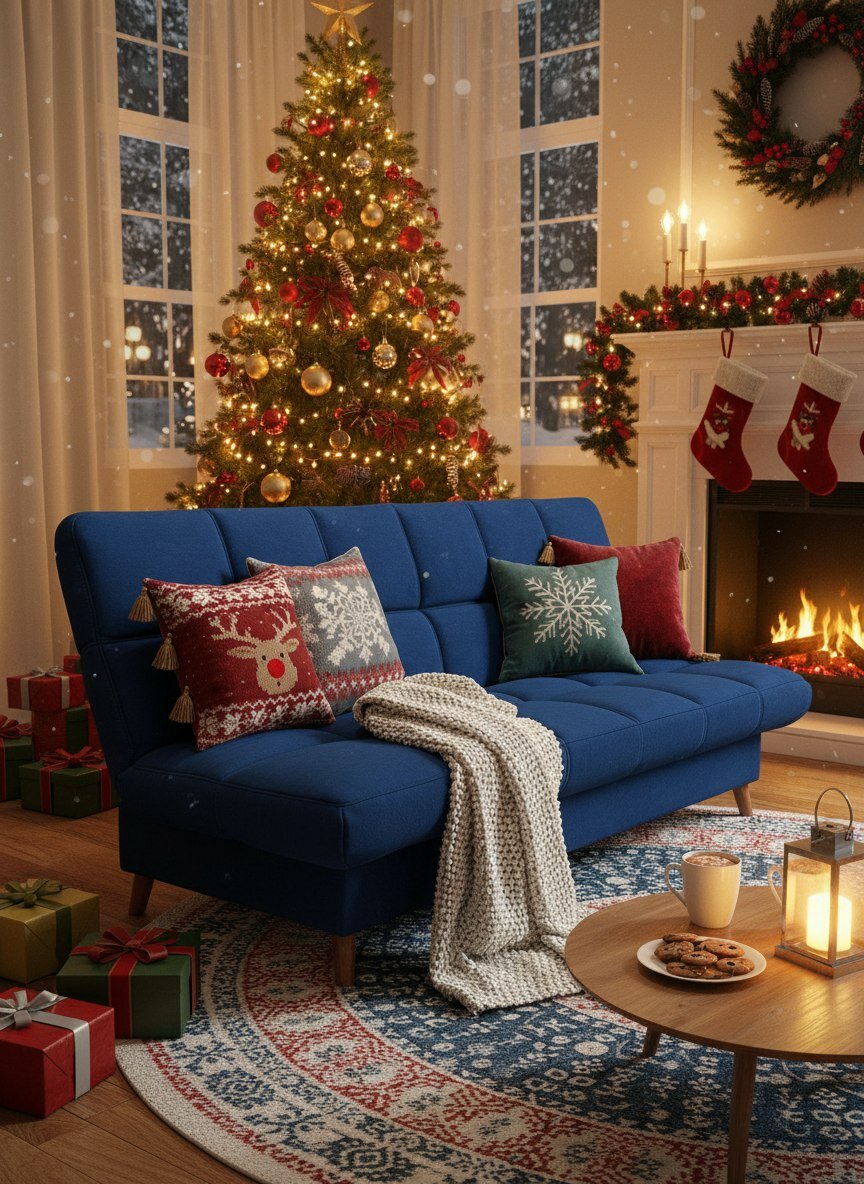 Диван кровать Стоун-прямой раскладной, синий, с ящиком для хранения, механизм клик-кляк, 200х93х99 см