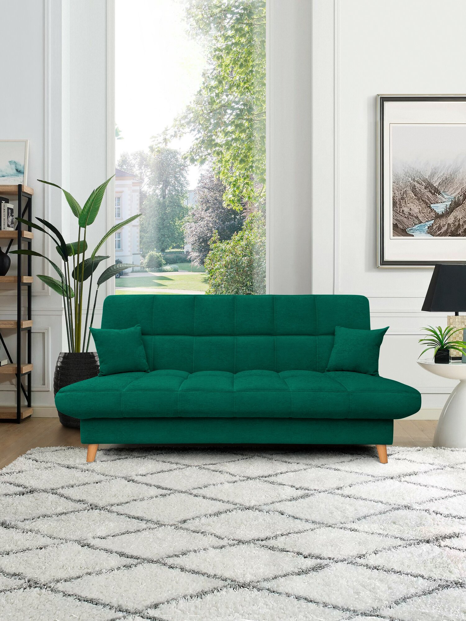 Диван кровать Стоун с подушками-прямой раскладной, зеленый, с ящиком для хранения, механизм клик-кляк, 200х93х99 см