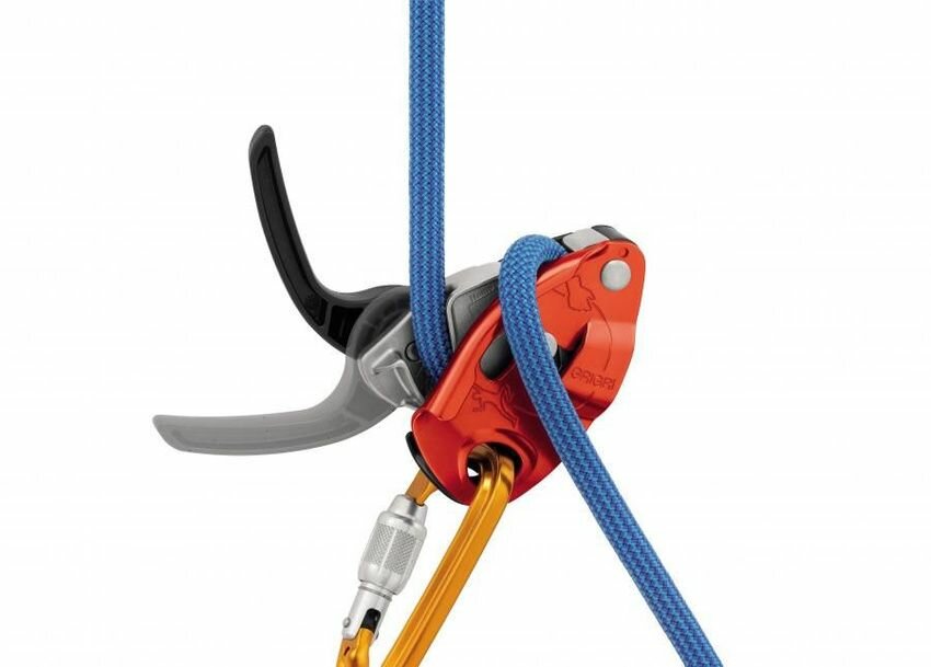 Страховочное устройство со вспомогательной блокировкой, совместимое с широким диапазоном одинарных веревок, подойдет для скал и скалодрома: