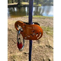 Надёжный и очень простой в использовании страховочный зажим по типу капля от компании al-nasr, используется при работах на двух веревках. Зажим плавно идет по веревке в двух направлениях (вверх-вниз) или только вверх, в зависимости от выбранного режима. В случае срыва GRAB сразу же блокируется (схватывает) веревку. Стандарт устройства соответствует CE EN 576/ EN 12841/A/B