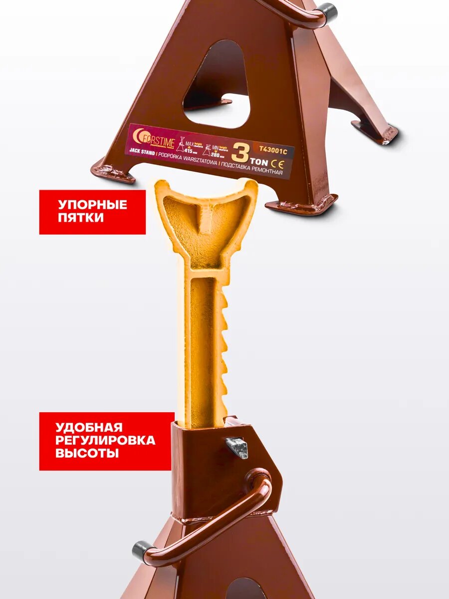 Ремонтные подставки для машины с грузоподъемностью до 3 тонн от бренда FORSTIME - надежное оборудование, предназначенное для использования в автомастерской, гараже или любом другом месте, где требуется подстраховка, удержание и защита от опрокидывания тяжелых автомобилей или других грузовых объектов.