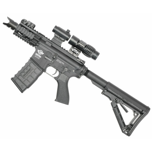 При производстве оружия для страйкбола компания G&G придерживается не только достоверности образца, но и требований, которые рождают подвиды рассматриваемой игры. Последнее время набирает оборот формат боев на коротких дистанциях - такие мероприятия проходят в динамичном режиме, что также накладывает необходимость в некоторых свойствах привода. Ввиду этого фирма разработала необычное исполнение автомата M4A1 - PDW.