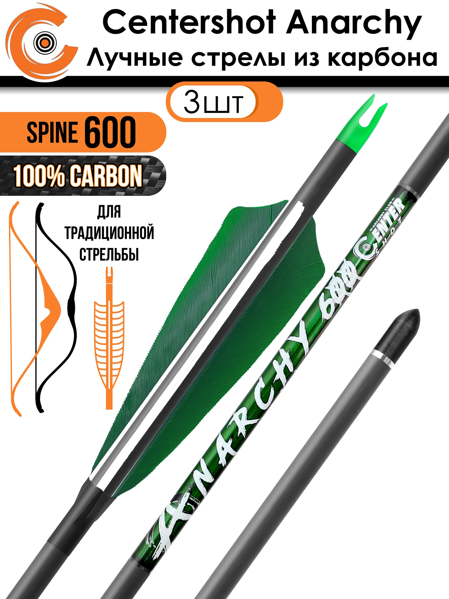 Стрела лучная карбоновая Centershot Anarchy 600 натуральное оперение (3шт.): сравнение цен, характеристики, фото, актуальное наличие и цены.