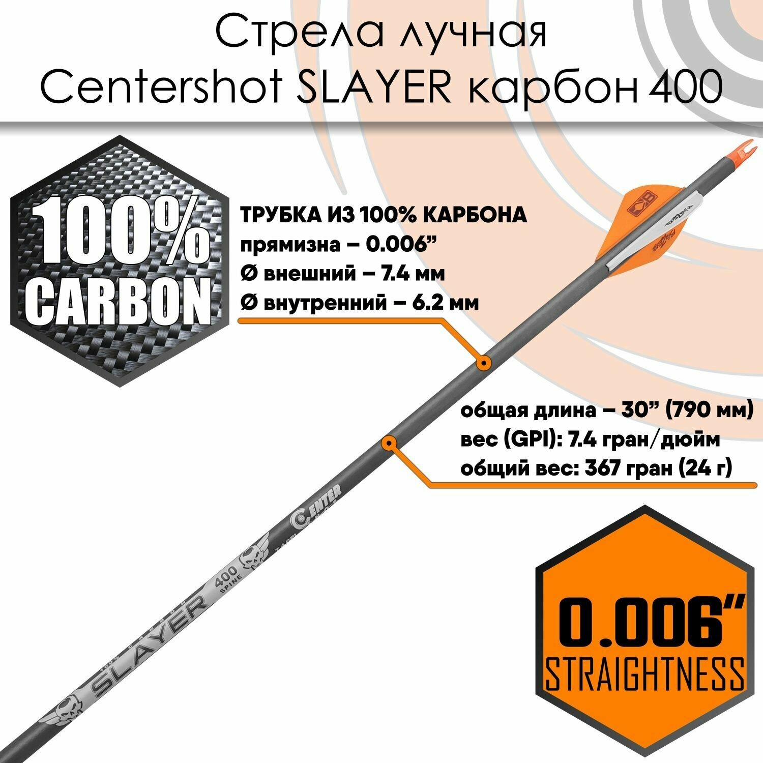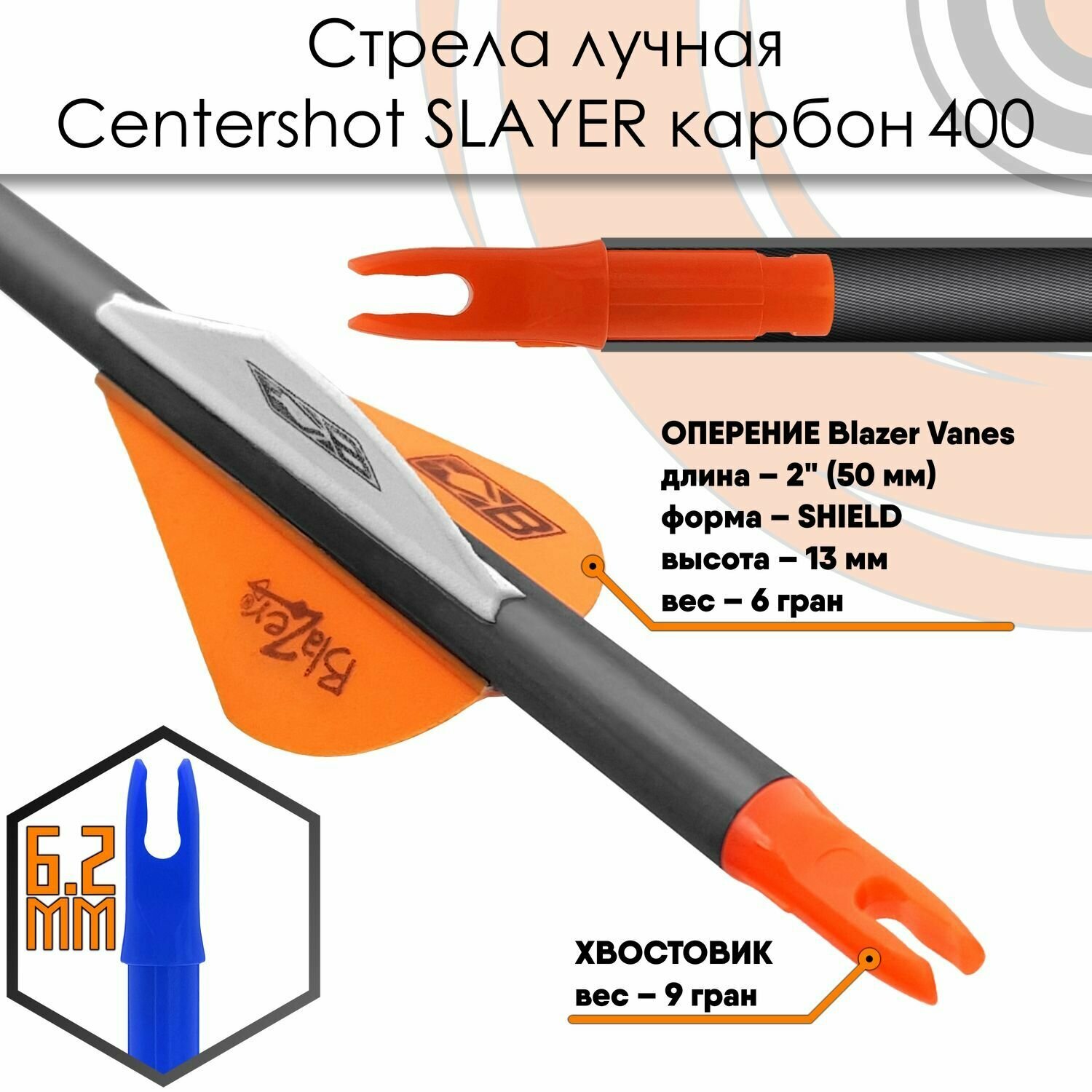 Стрелы Centershot Slayer выполнены из высококачественного 100% карбона. В процессе производства перед выпуском, каждая стрела проходит проверку спайнометром и на соответствие заявленным погрешностям по прямизне. Прямизна (straightness) составляет не более 0.006 дюйма от идеальной прямой, что позволяет лучнику быть уверенным в кучности своей стрельбы. Стрелы Centershot Radical созданы для охоты, но применимы, как в соревнованиях 3D, так и в простой стрельбе по мишеням. Материал: Карбон 100%Длина: 30 дюймов (78 см.)Внутренний диаметр: 6,22 ммВнешний диаметр: 7,37 мм Наконечник: Вкручиваемый с инсертом. Диаметр: 9/32 дюйма. Вес: 100 гран. Форма: BulletХвостовик: ВставнойОперение: Длина: 2 дюйма (5 см.) Форма: Blaser Vanes. Материал: искусственное. Вес (GPI): 8 гран/дюймПрямизна: 0.006" Доступные размеры (спайн): 350, 400. В комплекте 6 шт.
