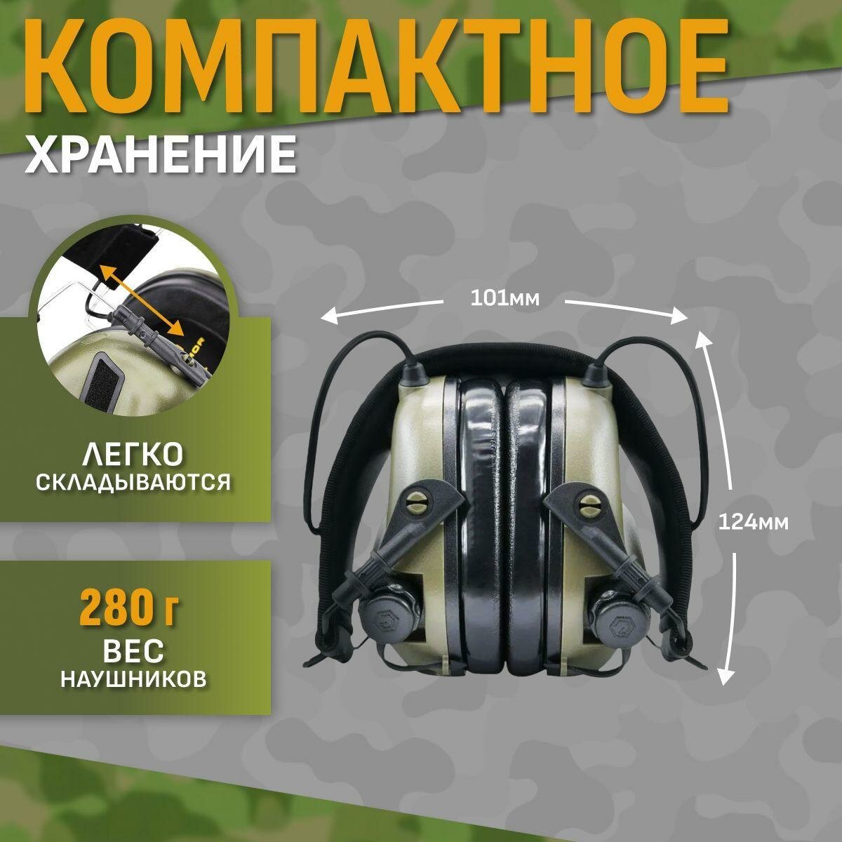 Купить Тактические наушники EEARMOR M32, шумоподавление, многоразовые, складные, зелёные/бронза с доставкой по всей России.