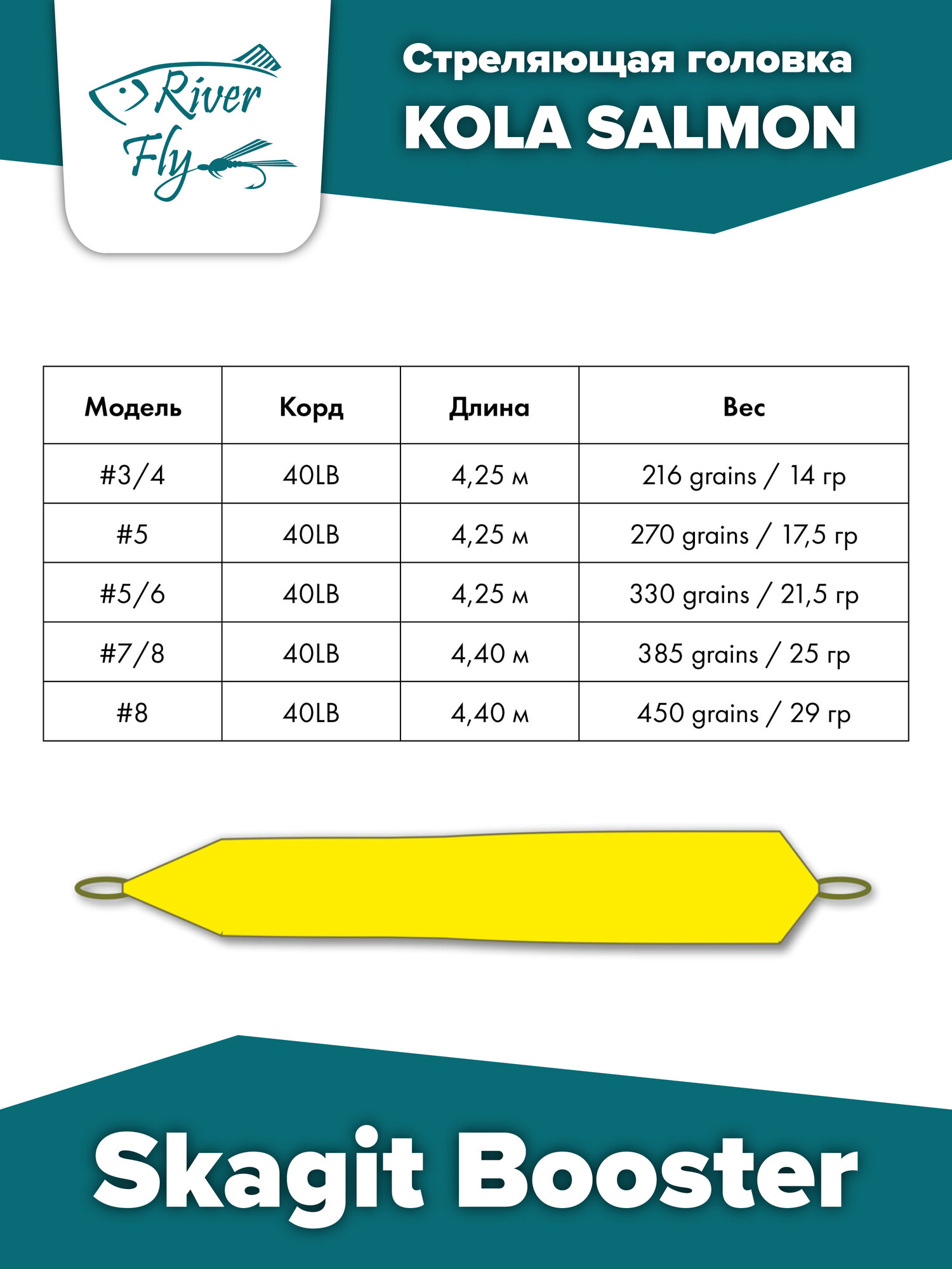 Стреляющая головка KOLA SALMON Skagit Booster 40LB, 480 grains (31 г, 4.3 м): сравнение цен, характеристики, фото, актуальное наличие и цены.