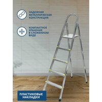 - Стремянка изготовлена из высококачественного сырья, что обеспечивает ее долговечность и надежность.