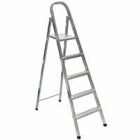 Тетивы стремянки стальной выполнены из прочного стального профиля, защищенного от коррозии эпоксидной порошковой эмалью. Задняя и передняя нога соединены между собой. Стремянка в рабочем положении надежно фиксируется рабочей площадкой.