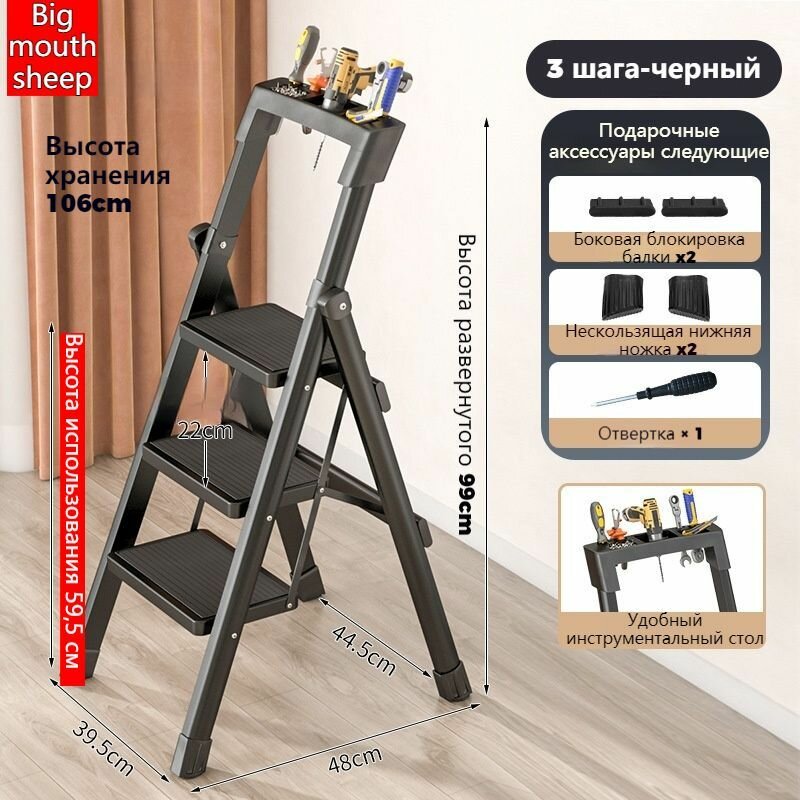 Стремянка 3 ступеней Складная нескользящая педаль со столиком для инструментов: сравнение цен, характеристики, фото, актуальное наличие и цены.