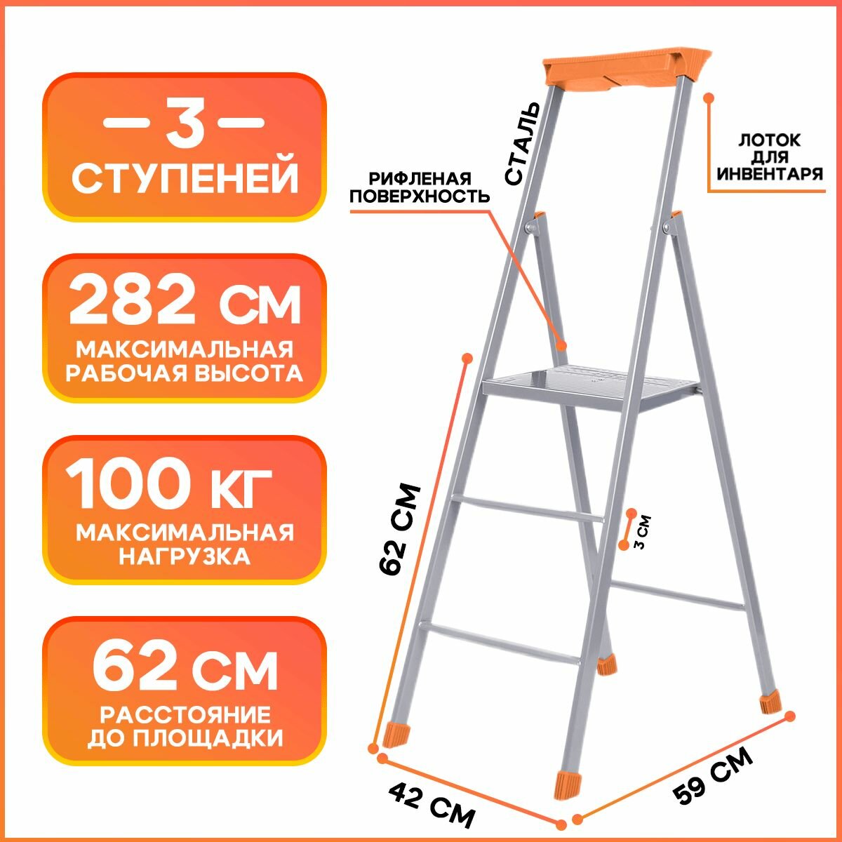 Купить Стремянка 3 ступени (профильная 30*15) СП3, Ижевск (НИКА) с доставкой по всей России. Стремянка 3 ступени (профильная 30*15) СП3, Ижевск (НИКА): сравнение цен, характеристики, фото, актуальное наличие и цены.