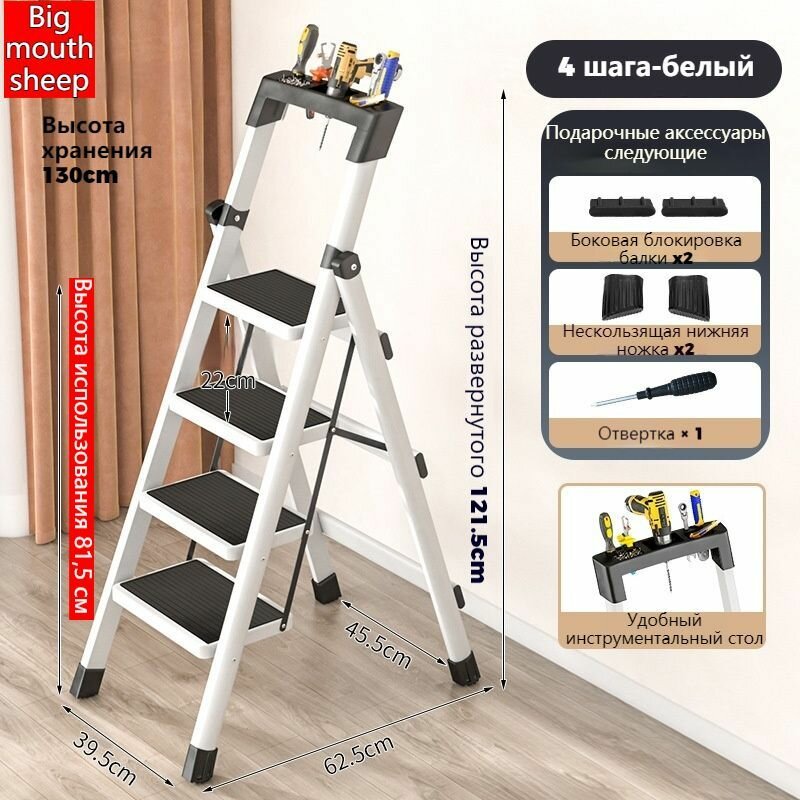 Стремянка 4 ступени Складная нескользящая педаль со столиком для инструментов: сравнение цен, характеристики, фото, актуальное наличие и цены.