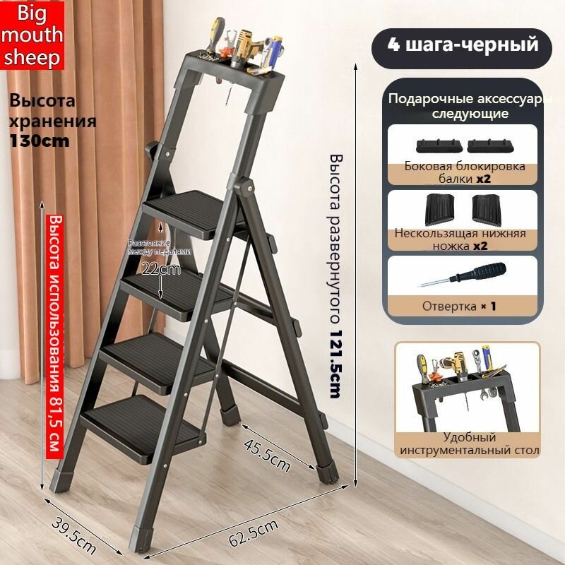 Стремянка 4 ступени Складная нескользящая педаль со столиком для инструментов: сравнение цен, характеристики, фото, актуальное наличие и цены.