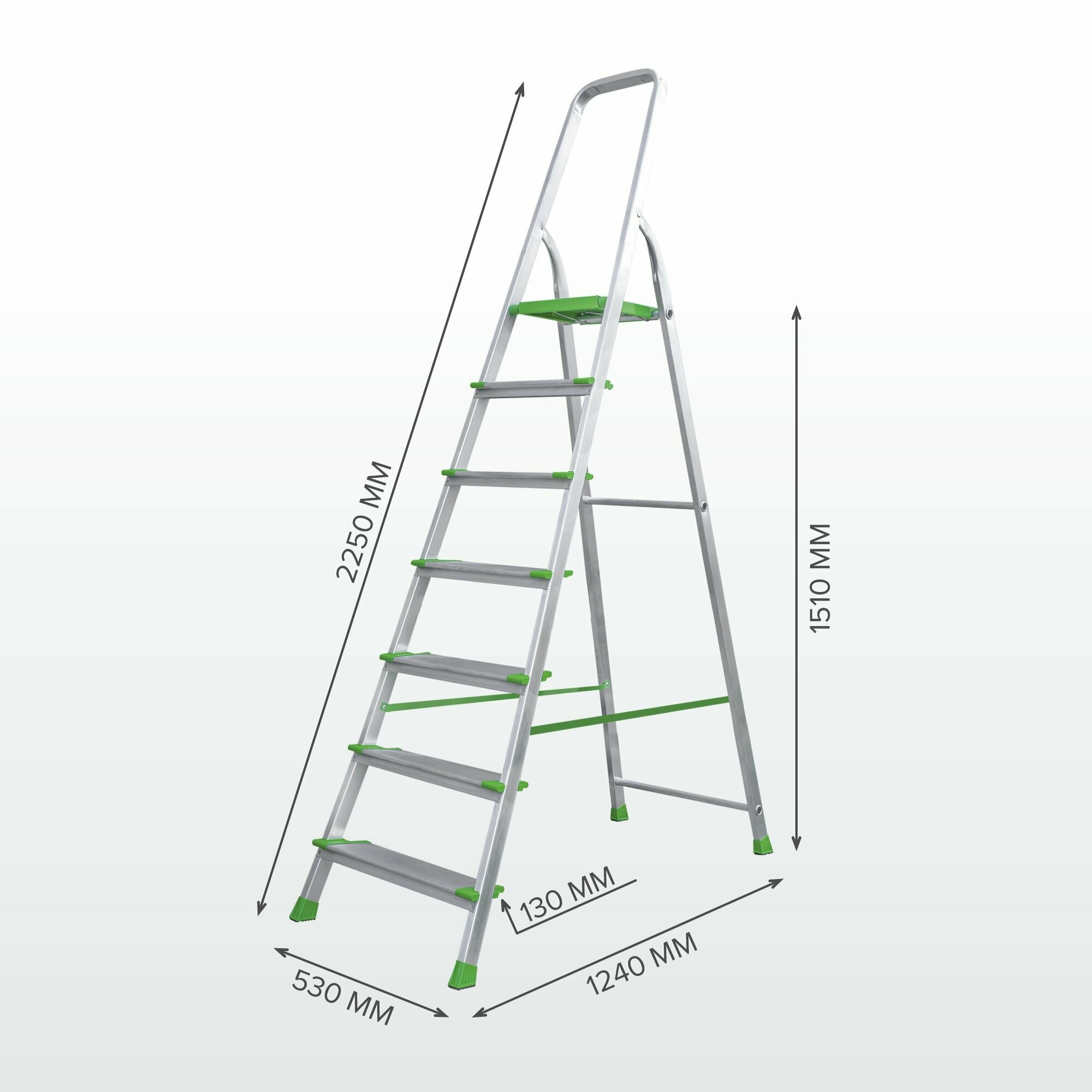 - Каждая ступень — рабочая площадка глубиной 130 мм. Меньше усталости при длительной работе.