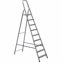 Алюминиевая стремянка АМ709 может использоваться для проведения строительных, монтажных, ремонтных и других работ на высоте до 3.9 м. Переносная конструкция состоит из основной части со ступенями, опорной части и рабочей площадки. Дуга безопасности является продолжением стороны, по которой осуществляется подъем. Модель оснащена противоскользящими опорами из пластика и рифлеными ступенями, повышающими ее безопасность. Стремянка рассчитана на эксплуатацию внутри и снаружи помещений и способна выдерживать нагрузку до 150 кг. Основные характеристики изделия: