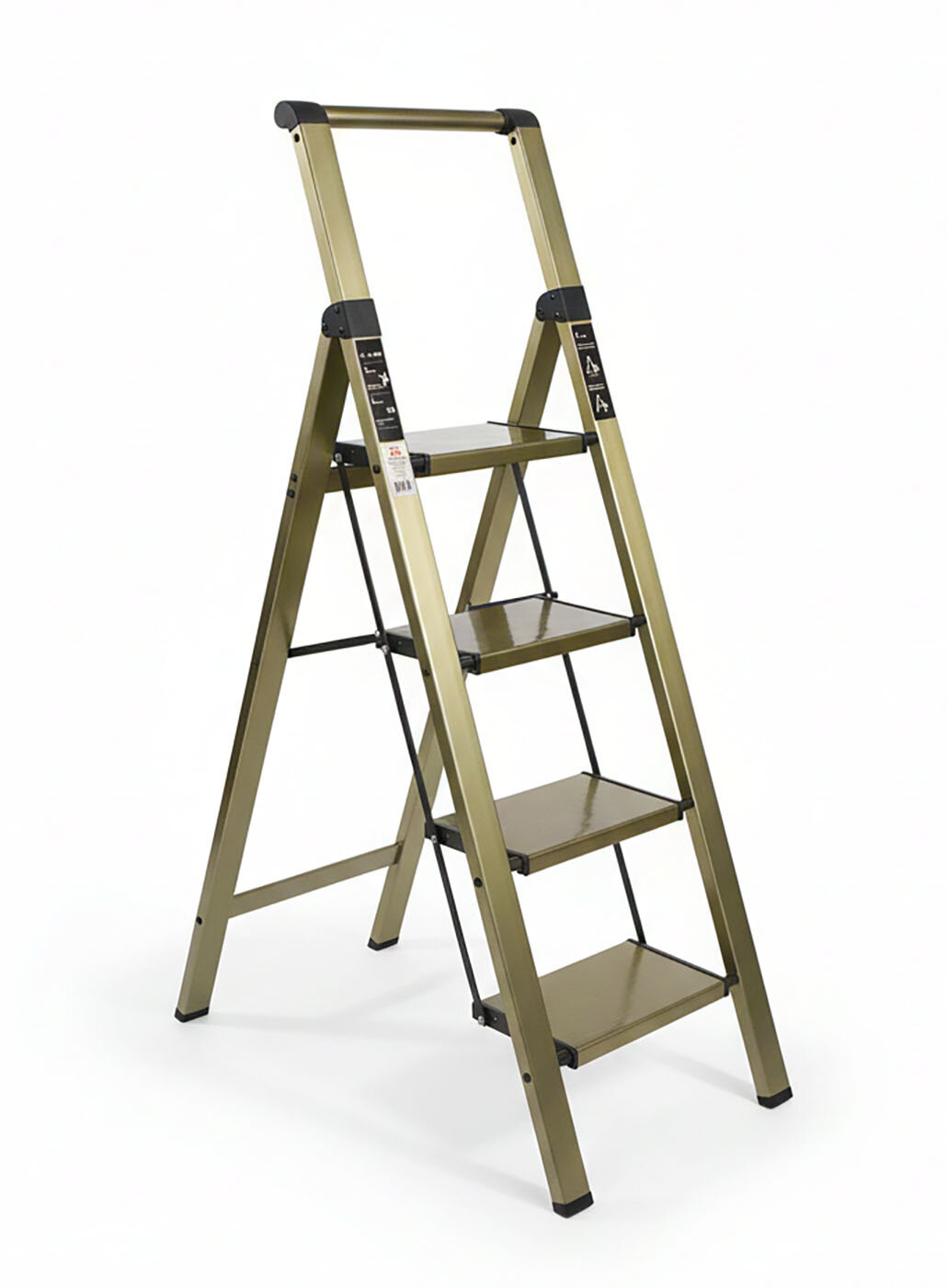 Стремянка алюминиевая SevenBerg Calipso 4 широкие ступени золотая