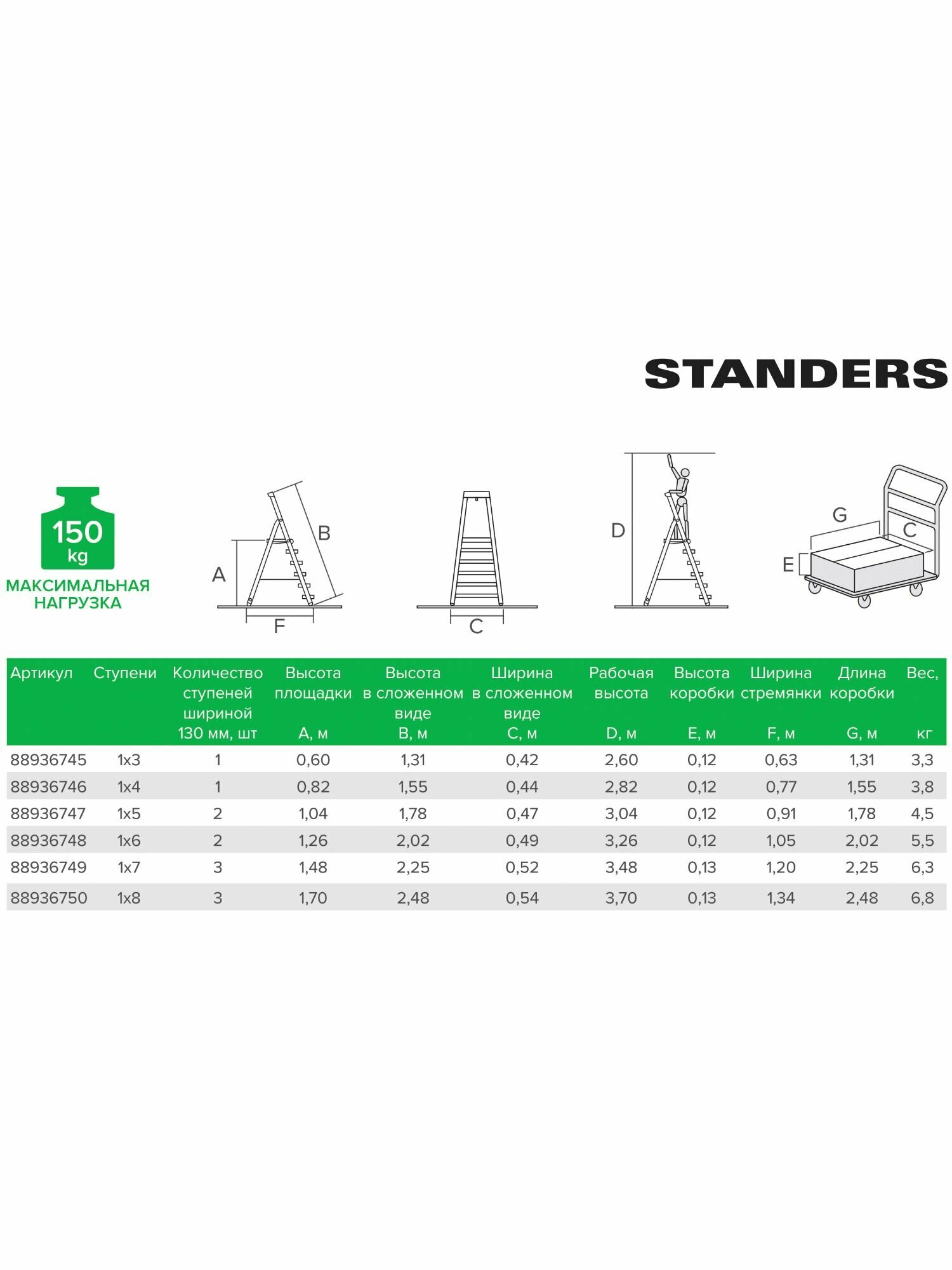 Купить Стремянка алюминиевая Standers 3 ступени, максимальная нагрузка 150 кг с доставкой по всей России. Стремянка алюминиевая Standers 3 ступени, максимальная нагрузка 150 кг: сравнение цен, характеристики, фото, актуальное наличие и цены.