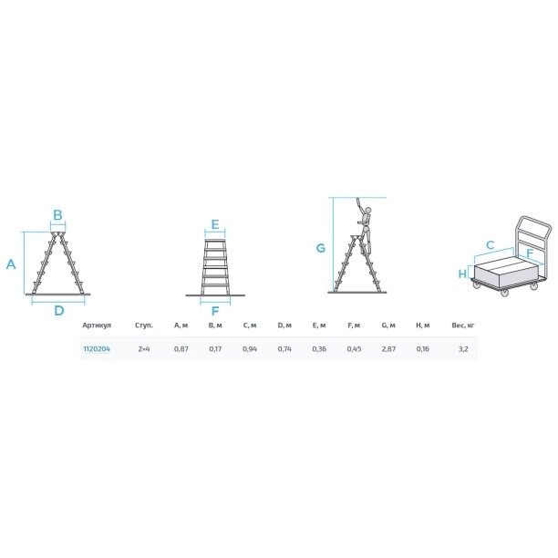 Легкая стремянка для бытового использования. Рабочая высота до 2,87 м