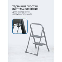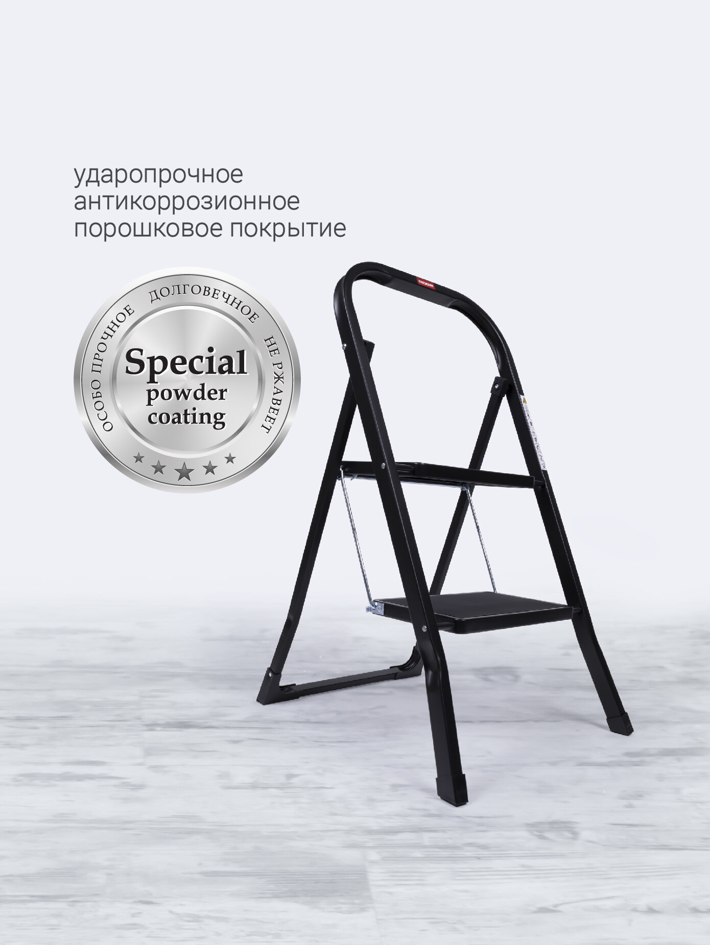 Стальная стремянка SHAN предназначена для любых хозяйственных задач. Эстетика, качество и функциональность стремянки позволяют использовать ее в интерьере. Трендовый черный цвет легко интегрируется в любой стиль жилых и хозяйственных помещений. Суперкомпактная, она разместится зазоре от 5 см. Ее опорная конструкция оснащена дополнительными стяжками для большей устойчивости и надежности. Выдерживает вес 150 кг. Удобная и простая система сложения и разложения. Для безопасности от непредвиденного сложения имеется замок. Ударопрочное антикоррозионное порошковое покрытие позволяет сохранять первоначальный вид изделия в процессе эксплуатации. Предусмотрен поручень с функцией ограждения для страховки от падения. Две ступени с нескользким рельефом и односторонним расположением. Размер ступеней (ш г в) 30 х 20 х 2 см, достаточный для любого размера стопы. Эргономичные, профилированные ножки с защитой от повреждений полов, в том числе и деликатных (паркет, пробка и т д) Габариты стремянки (Ш В Г): 46,5 х85,6 х 4,5 см Гарантия: 3 года