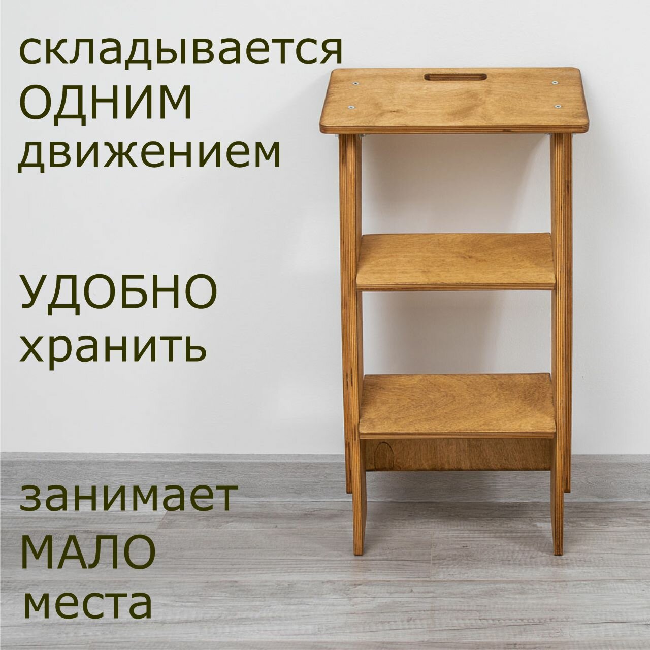 Стремянку можно использовать в качестве стульчика, удобной полочки - этажерки, табурета, мини - лесенки. Ее высота 61 см, которые добавляются к вашему росту.