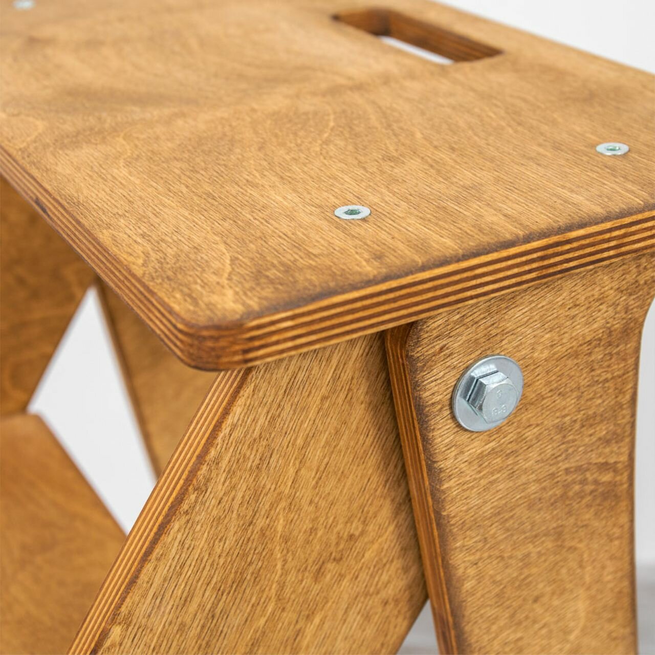 Стремянка окрашена натуральным льняным маслом цвета махагон и идеально отшлифована.