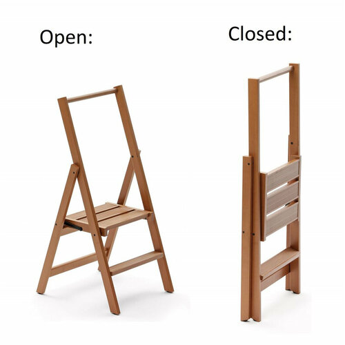 Маленькая стремянка из дерева Kimoro 2 ступени итальянской фабрики Arredamenti. Материал каркаса - массив бука, Стремянка складная, Без колесиков, На ножках - резиновые накладки. Небольшая стремянка для дома - для кухни, для прихожей.