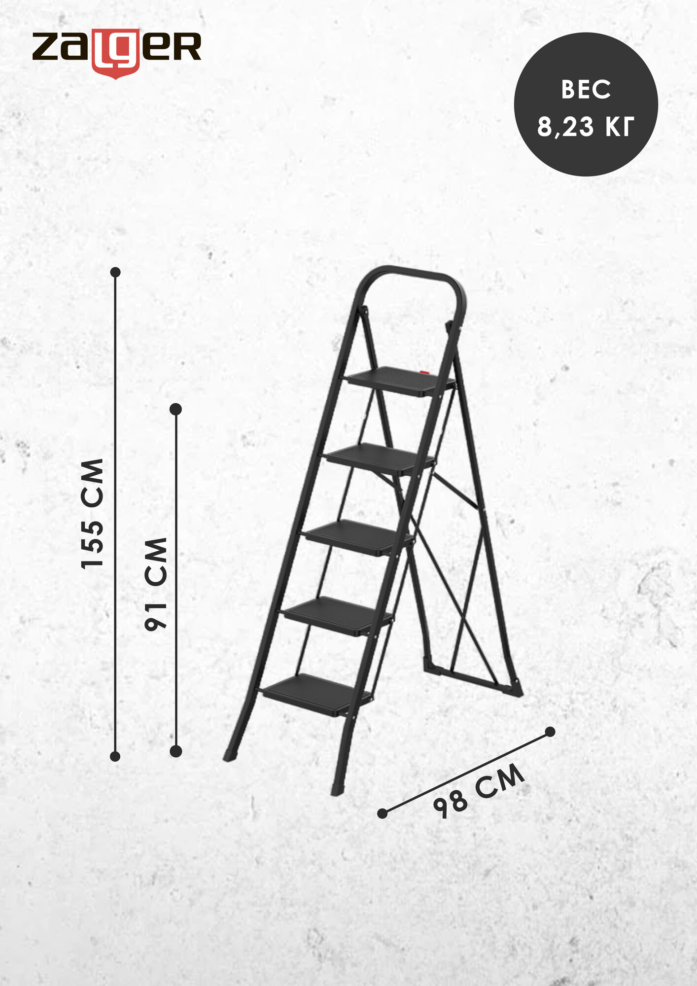 Купить Стремянка Zalger Jet, 5 ступенек, складная, с ковриками, чёрная, сталь с доставкой по всей России. Стремянка Zalger Jet, 5 ступенек, складная, с ковриками, чёрная, сталь: сравнение цен, характеристики, фото, актуальное наличие и цены.