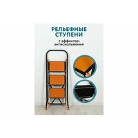 Широкие и удобные ступени с противоскользящим покрытием обеспечивают безопасность и устойчивость во время работы. Размер каждой ступени составляет 20 х 30 см, что делает подъем и спуск комфортным. Максимальная нагрузка на стремянку составляет 150 кг, что позволяет использовать ее даже для тяжелых работ.