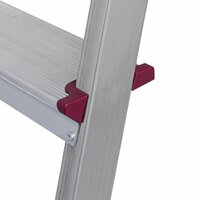 Стремянка Krause Corda имеет высокую дугу, защищающую от падений и травм, а так же не скользящие поверхности каждой опорной основы — ступеней и верхней платформы, обеспечивающие безопасность каждого шага и передвижения по стремянке. Опорные наконечники прочно закрепляют стремянку на напольном покрытии и не дают ей скользить и расшатываться.