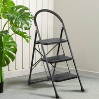 Стильная черная стремянка высотой 1.27 м (высота до верхней ступени 68.5 см) подходит для выполнения различных задач: от малярных работ до установки мебели или размещения декора.