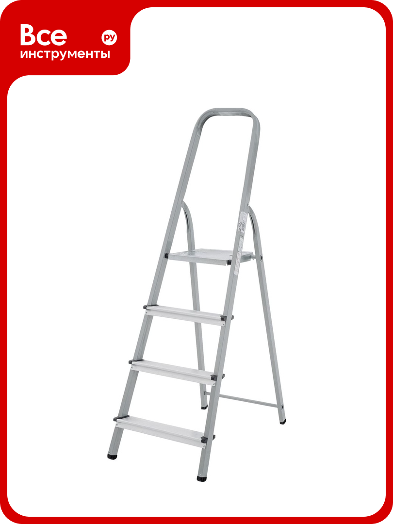 Ступени: 4 Максимальная нагрузка: 150 кг Высота: 1,48 м Высота площадки: 0,81 м Ширина: 0,44 м Вес: 5,2 кг
