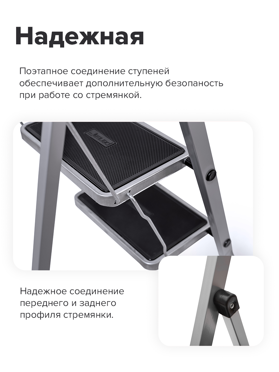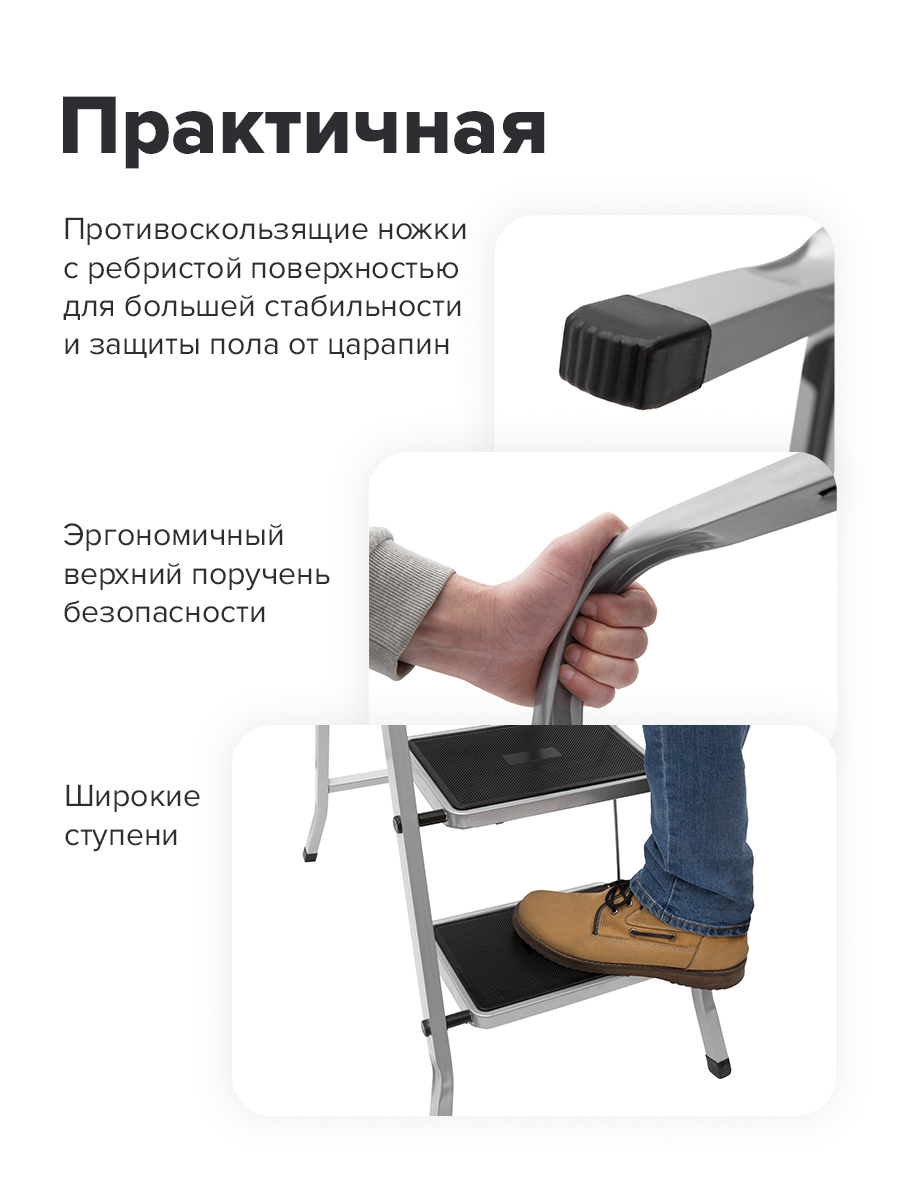 антискользящее покрытие, односторонняя, складная конструкция, резиновые наконечники, широкая ступень